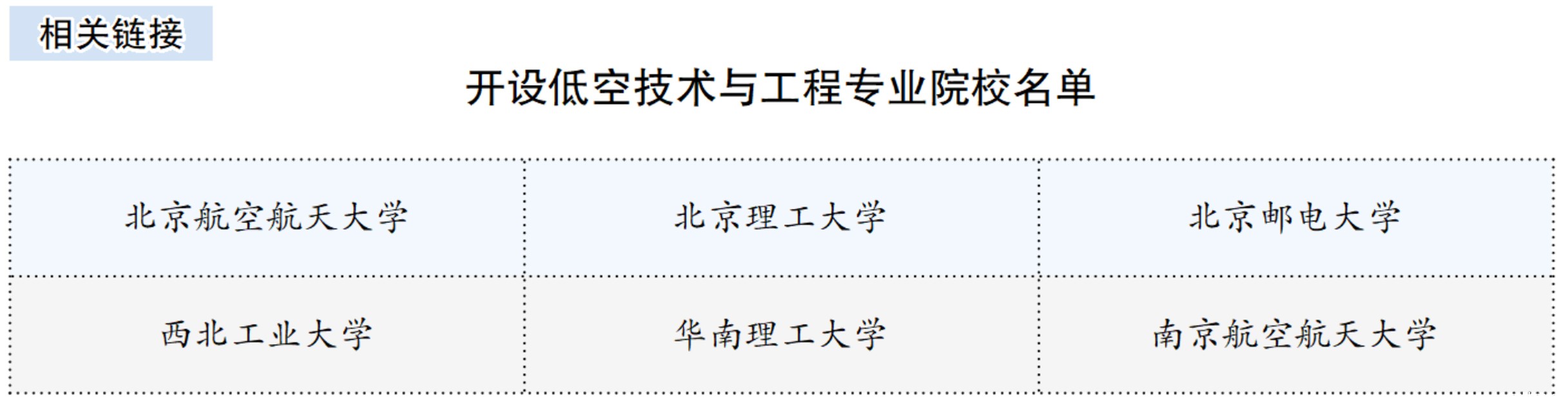 目前,国内已有6所高校获批开设低空技术与工程本科专业,分别是北京航空航天大学、北京理工大学、北京邮电大学、西北工业大学、华南理工大学和南京航空航天大学。