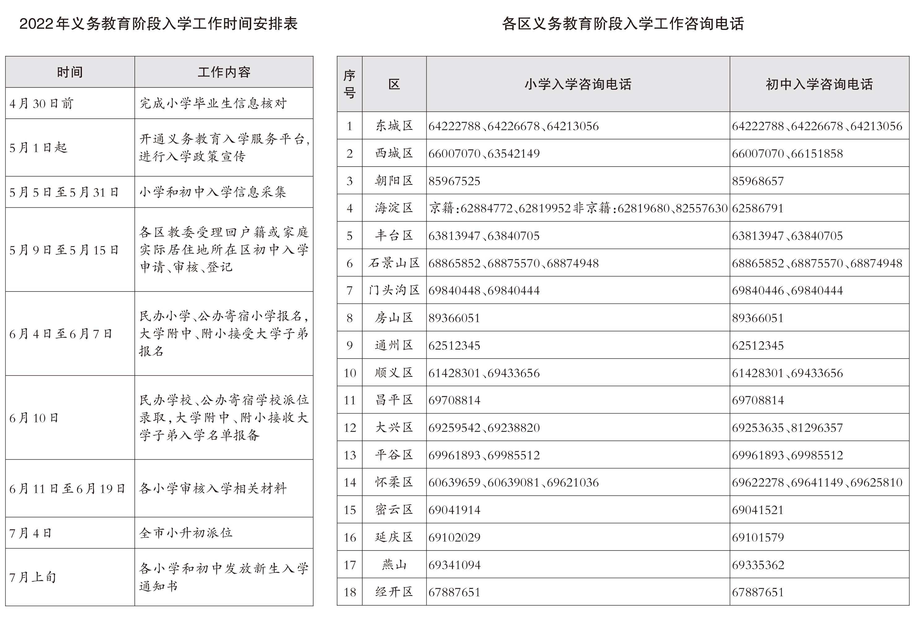 北京市教委有关负责人介绍,今年义务教育阶段入学总体政策保持稳定,坚持立足北京“四个中心”战略定位,落实首都城市规划、两区建设、京津冀协同发展等要求,遵循稳中求进总基调,全力推进义务教育优质均衡。各区要坚持政府统筹、区级主责、免试就近、有序规范,严格规范入学秩序,加强入学工作管理,确保入学工作平稳有序。