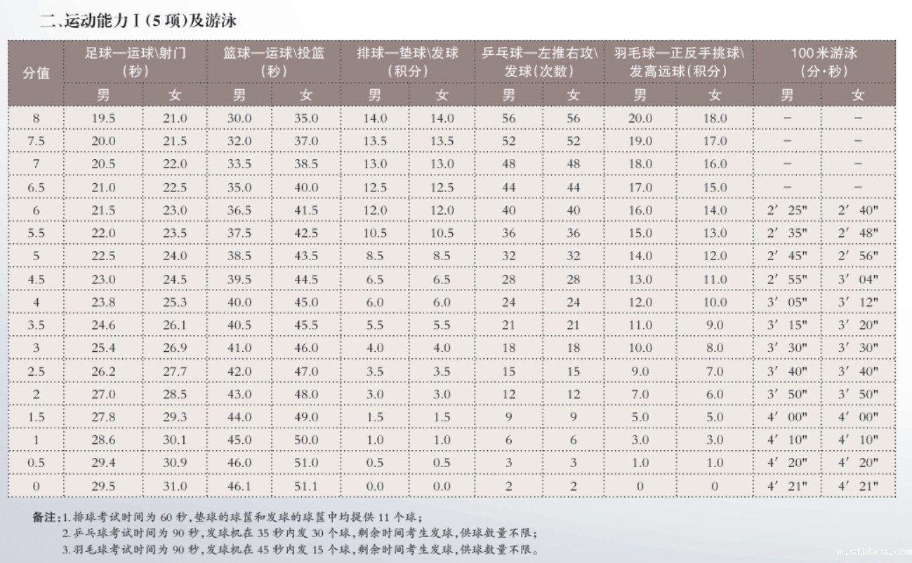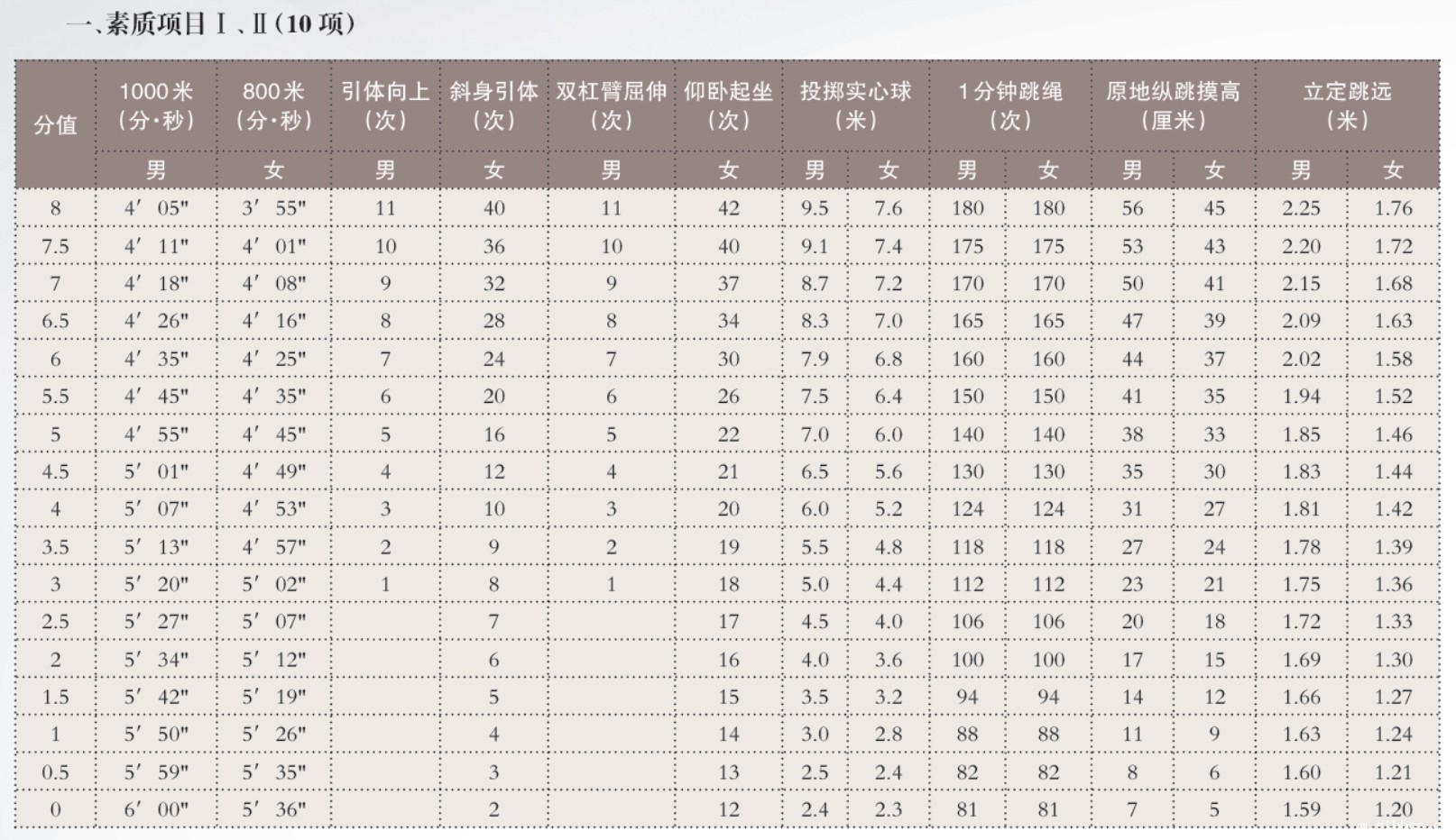 北京市义务教育体育与健康考核评价现场考试项目评分标准(试行)