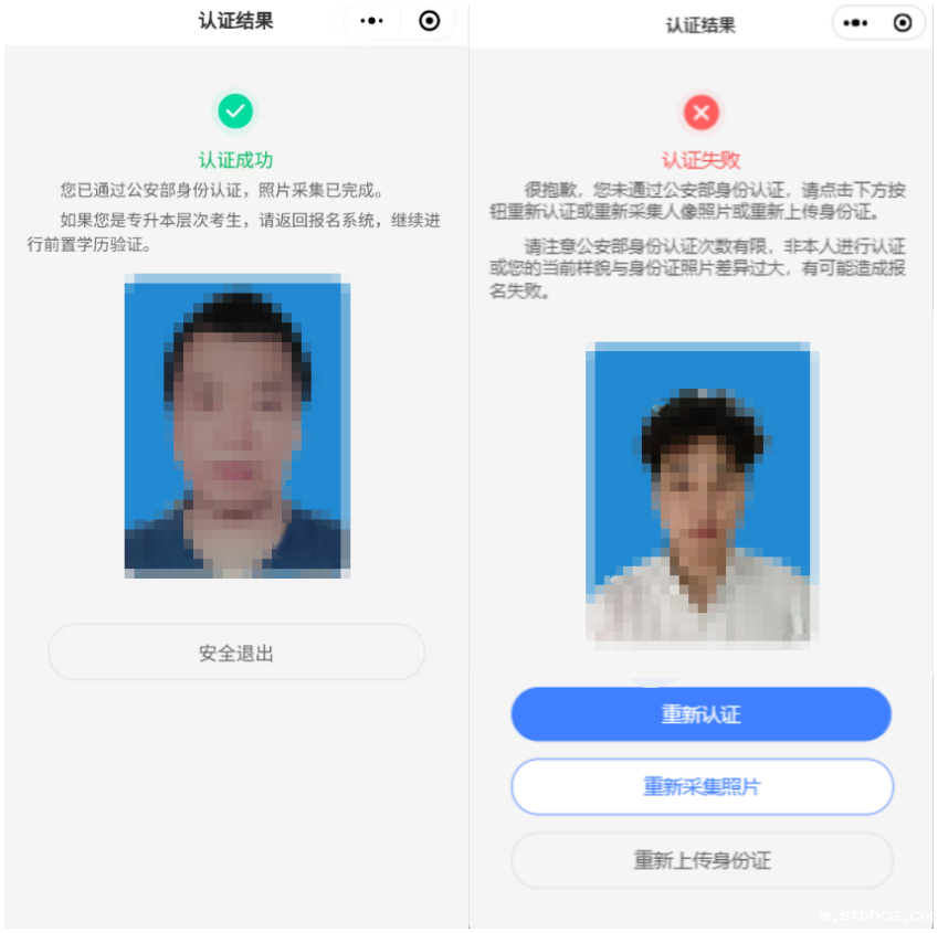 请注意:若考生连续5次公安部认证未通过,将被视为照片采集失败,无法继续报名,小程序也无法继续进行采集。
