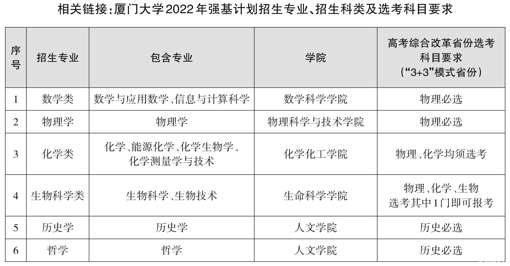 北京考试报讯(记者 邓 菡) 厦门大学2022年强基计划目前正处于网上报名的收尾阶段。今年该校将在数学类、物理学、化学类、生物科学类、历史学、哲学等6个专业进行该计划的招生选拔,网报于4月30日截止。符合报考条件的考生可按学校发布的简章完成报考,参与选拔。