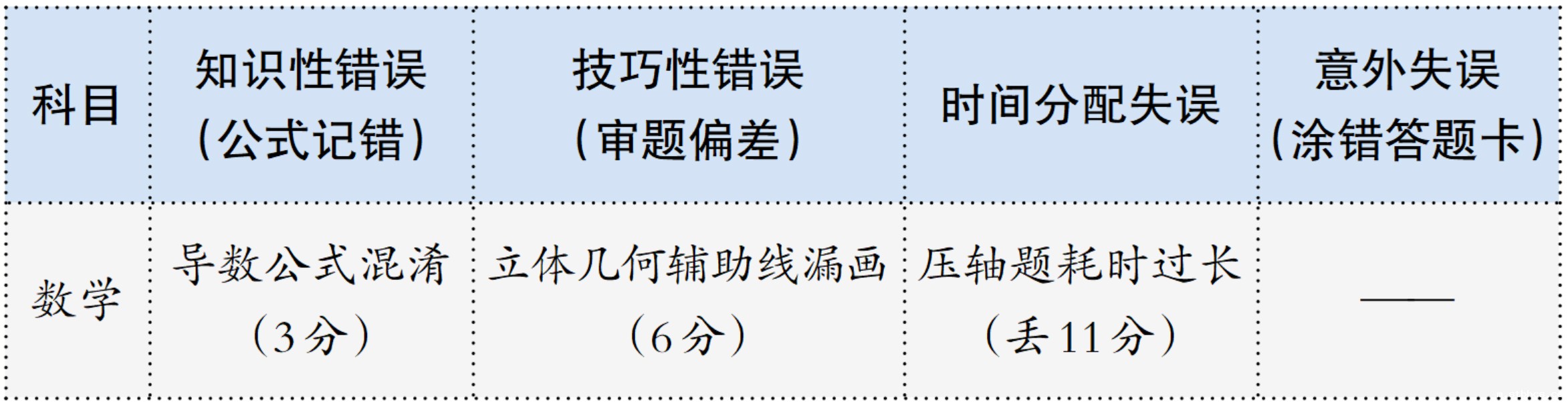 你可制作“失分统计表”,精准分析试卷,定位自己的“可提升区”(示例如下表)。