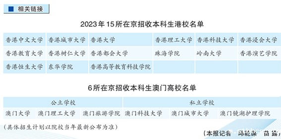 近年来,港澳高校在京招生冷热不均。据统计,2022年香港中文大学在京录取20人,香港城市大学录取17人。往年,大部分香港高校要求考生高考成绩要达到特殊类型招生控制分数线。