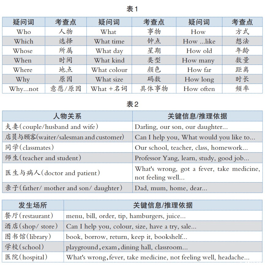 在做事实细节题时,考生需要关注疑问词考查的多样性,涉及不同疑问词引导的问句,具体考查点见表1。
