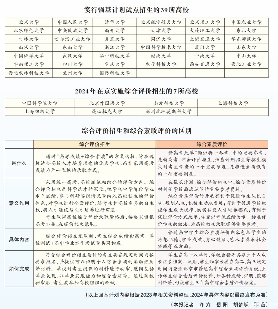 近期,多所综合评价招生高校陆续发布2024年招生简章,强基计划报名也即将启动。同为“基于统一高考、多维度评价考生的招生模式”,它们有什么不同,又该如何做选择呢?