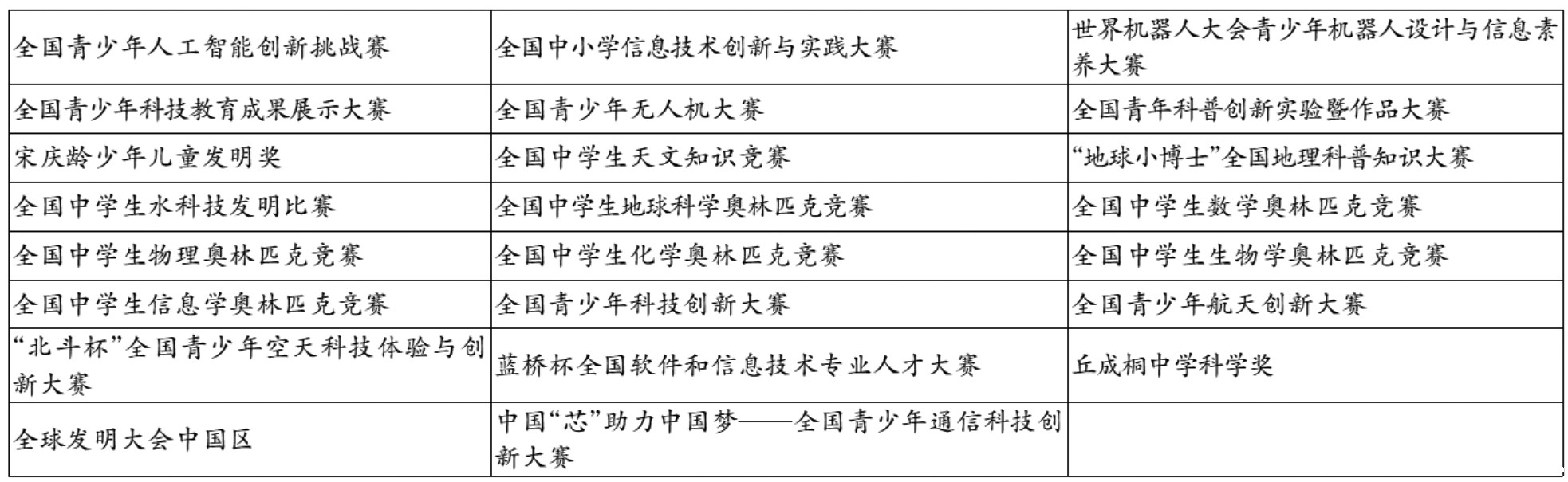 (注:以上为教育部2022年9月公布的2022—2025学年面向中小学生的全国性竞赛活动名单中自然科学素养类竞赛名称,具体竞赛信息以实际为准。)