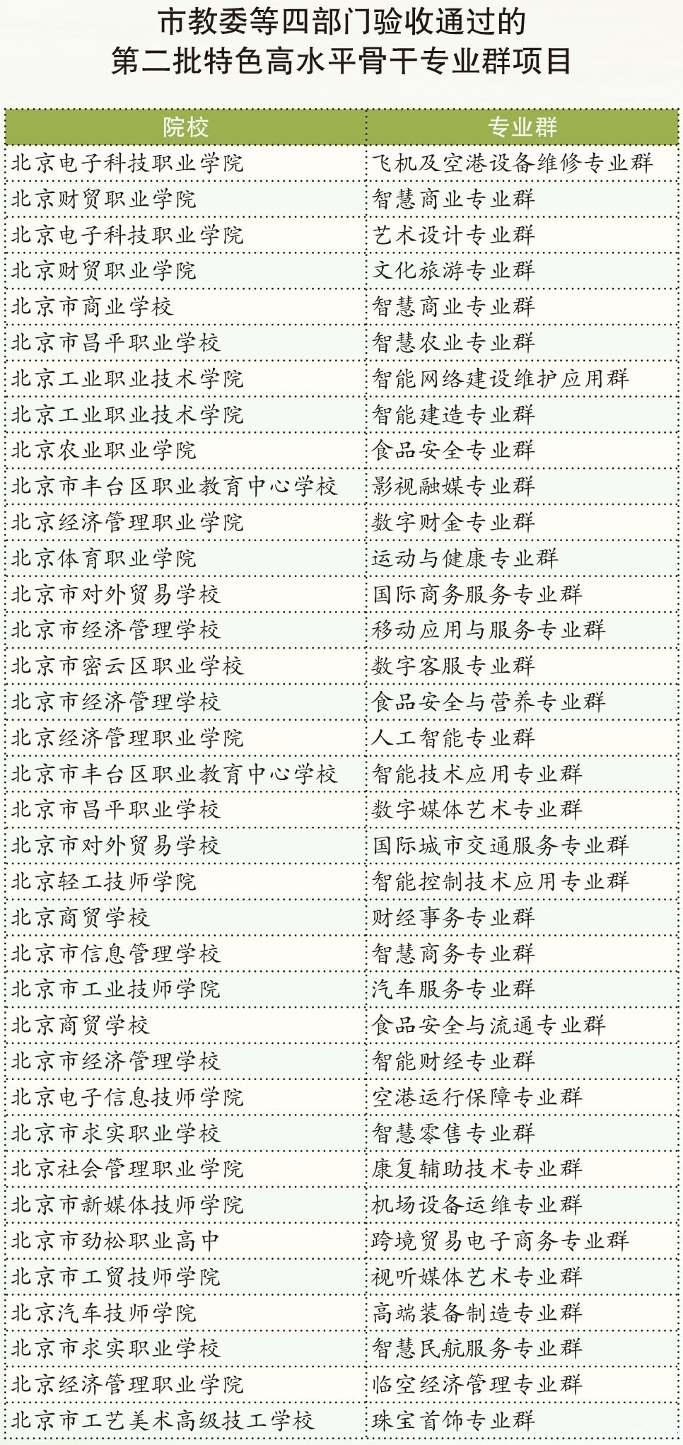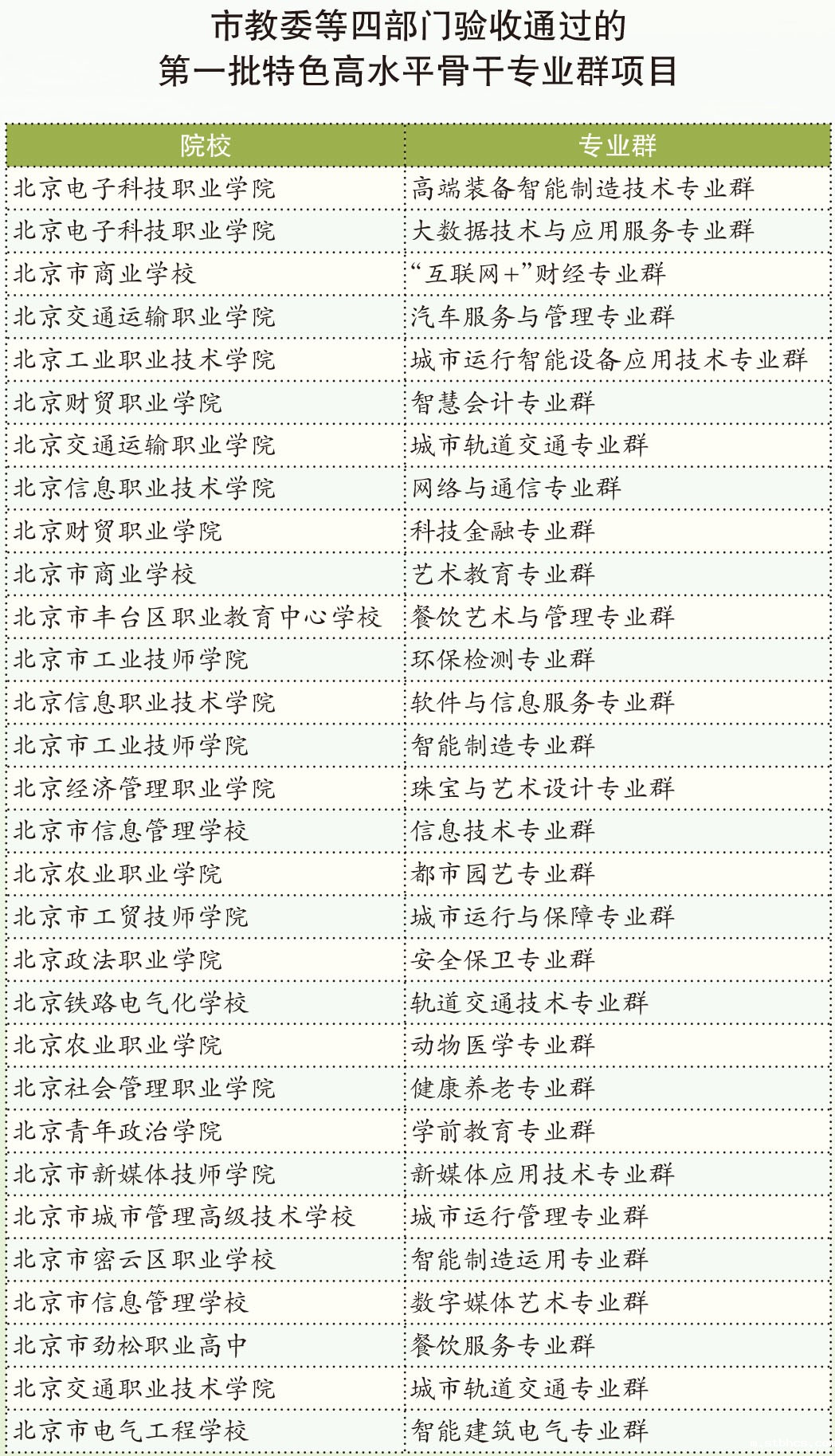 今年5月,市教委等四部门启动北京市第三批特色高水平骨干专业(群)和实训基地(工程师学院、技术技能大师工作室)项目验收工作。在前两批项目验收中,本市共有66个职业院校特色高水平骨干专业群通过验收。而记者从相关院校了解到,依托这些特色高水平专业群,各院校打造出一批特色鲜明、综合实力强、社会认可度高、招生就业好、具有示范引领作用的专业品牌。