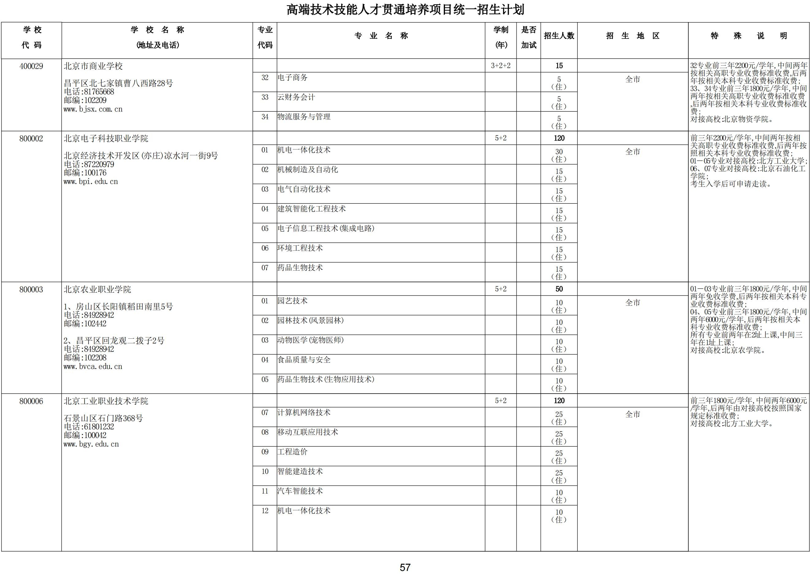 2024年高端技术技能人才贯通培养项目统一招生计划