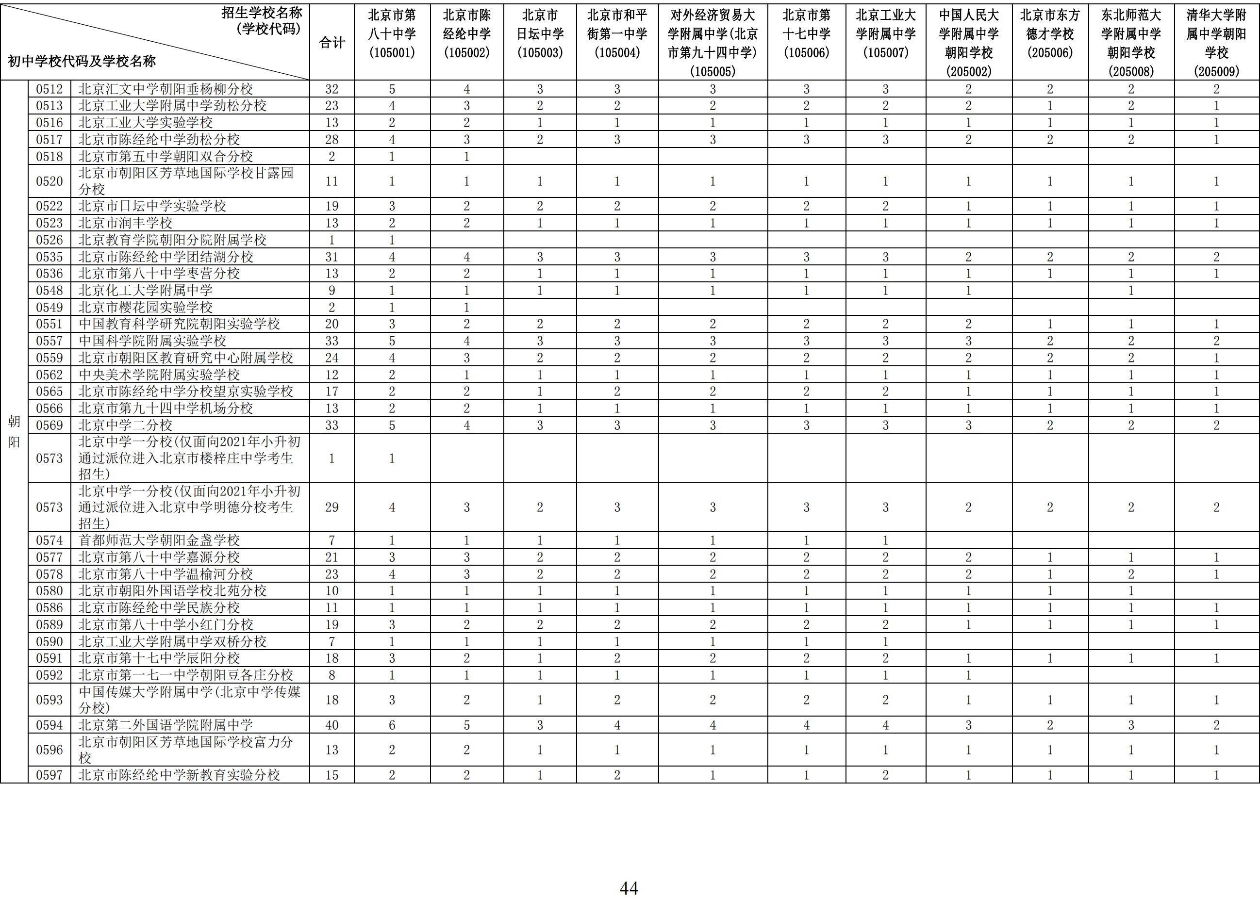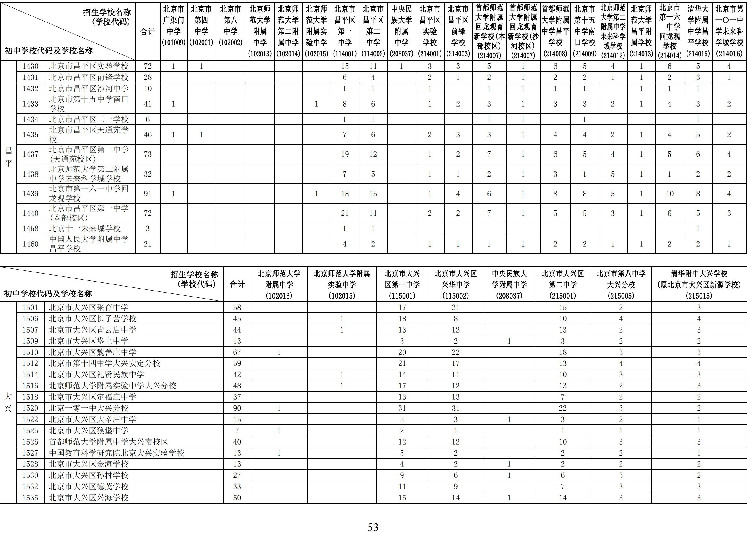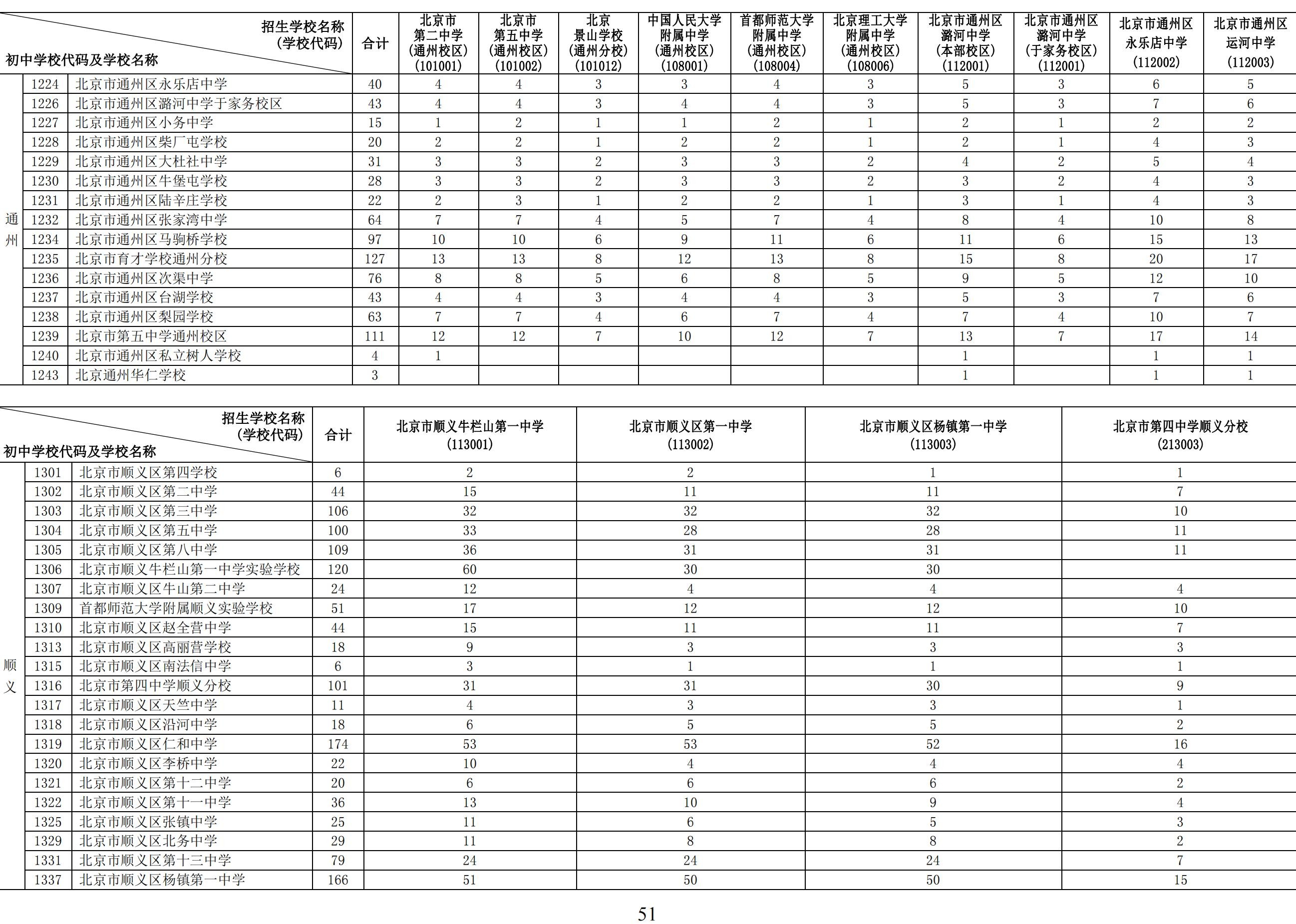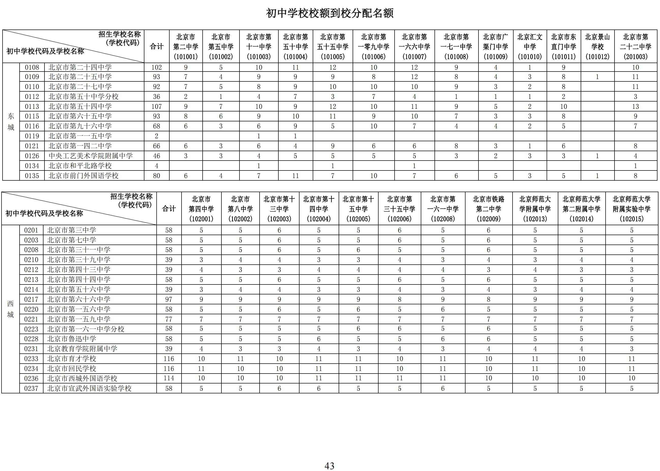 2024年初中学校校额到校分配名额