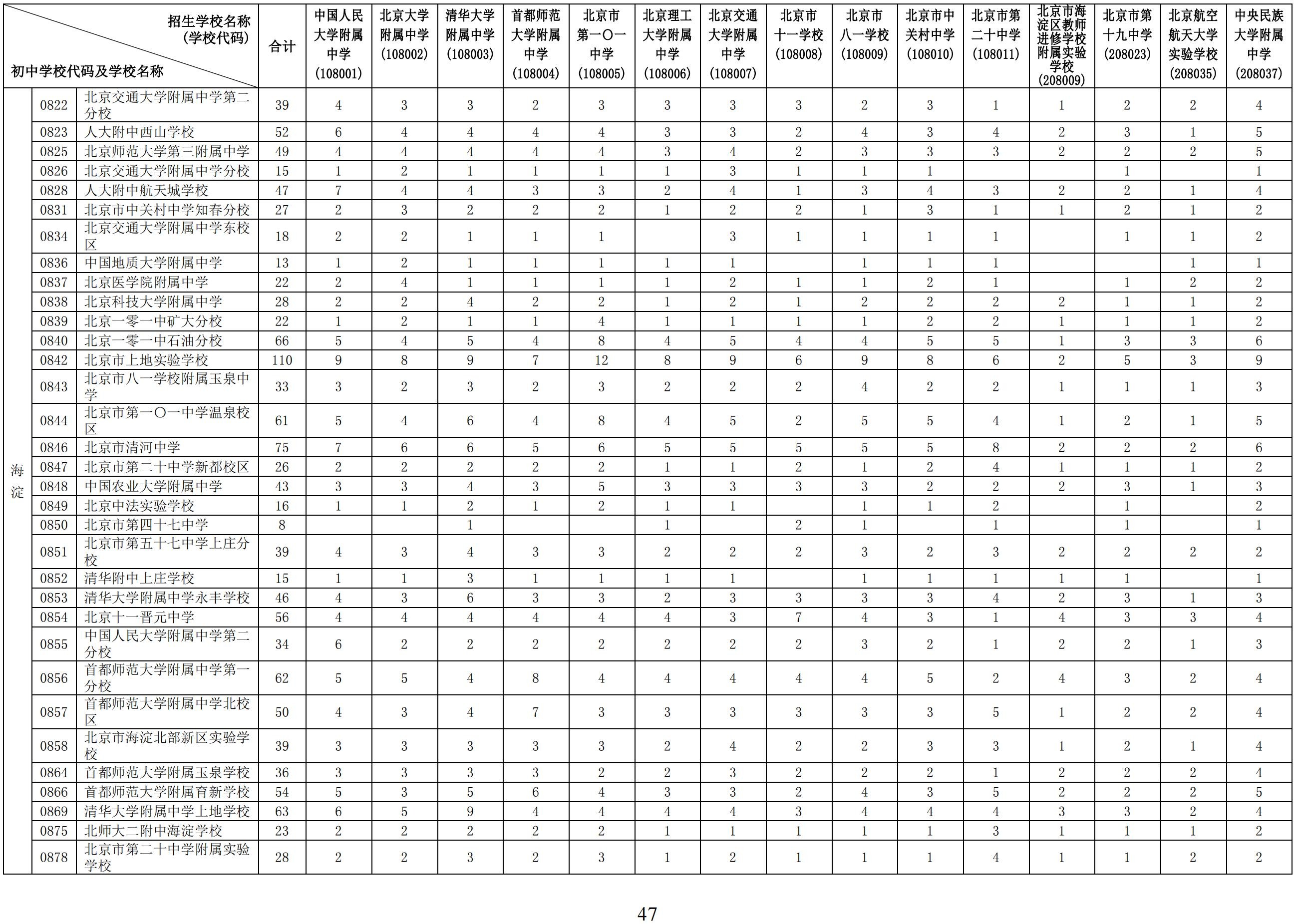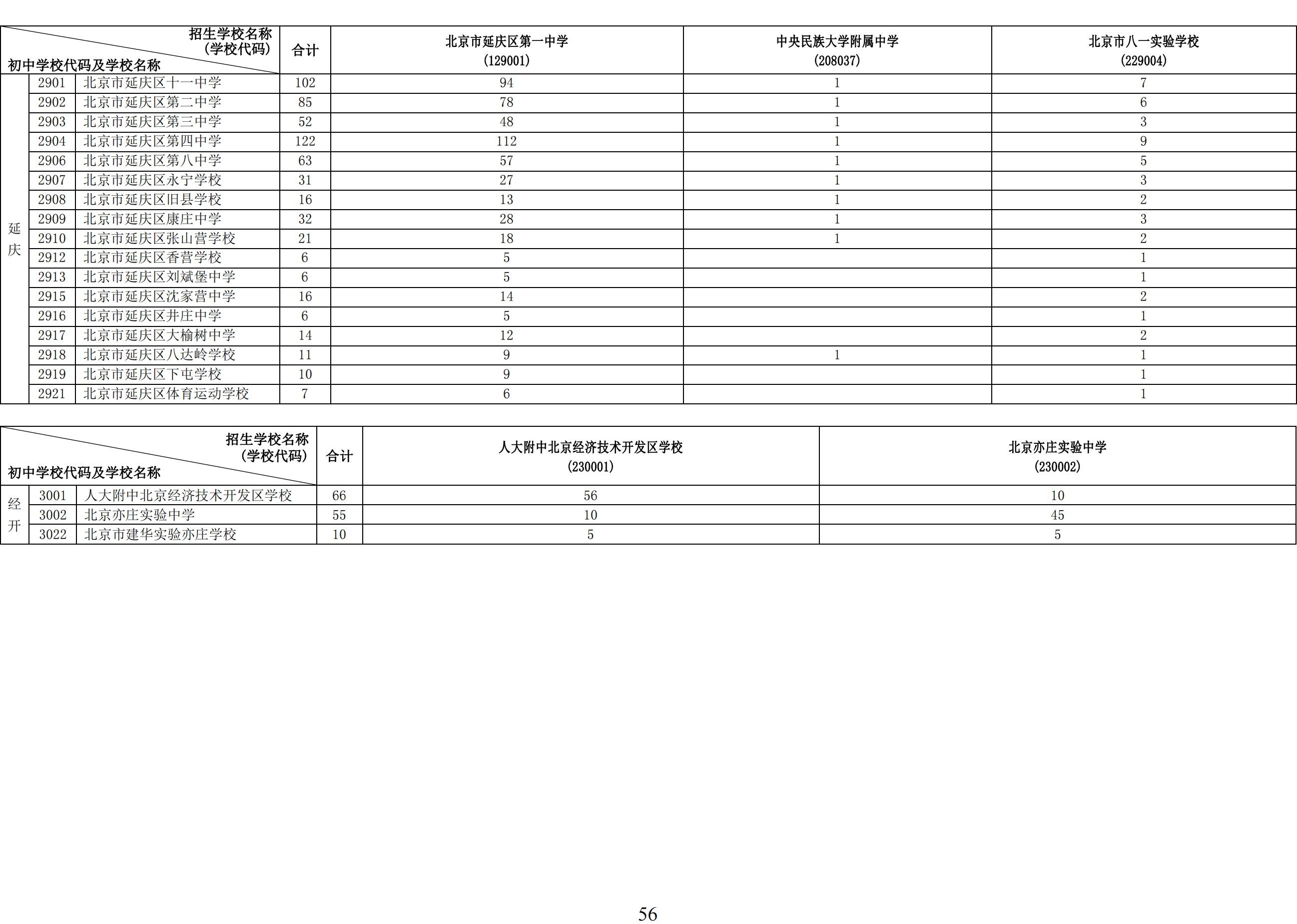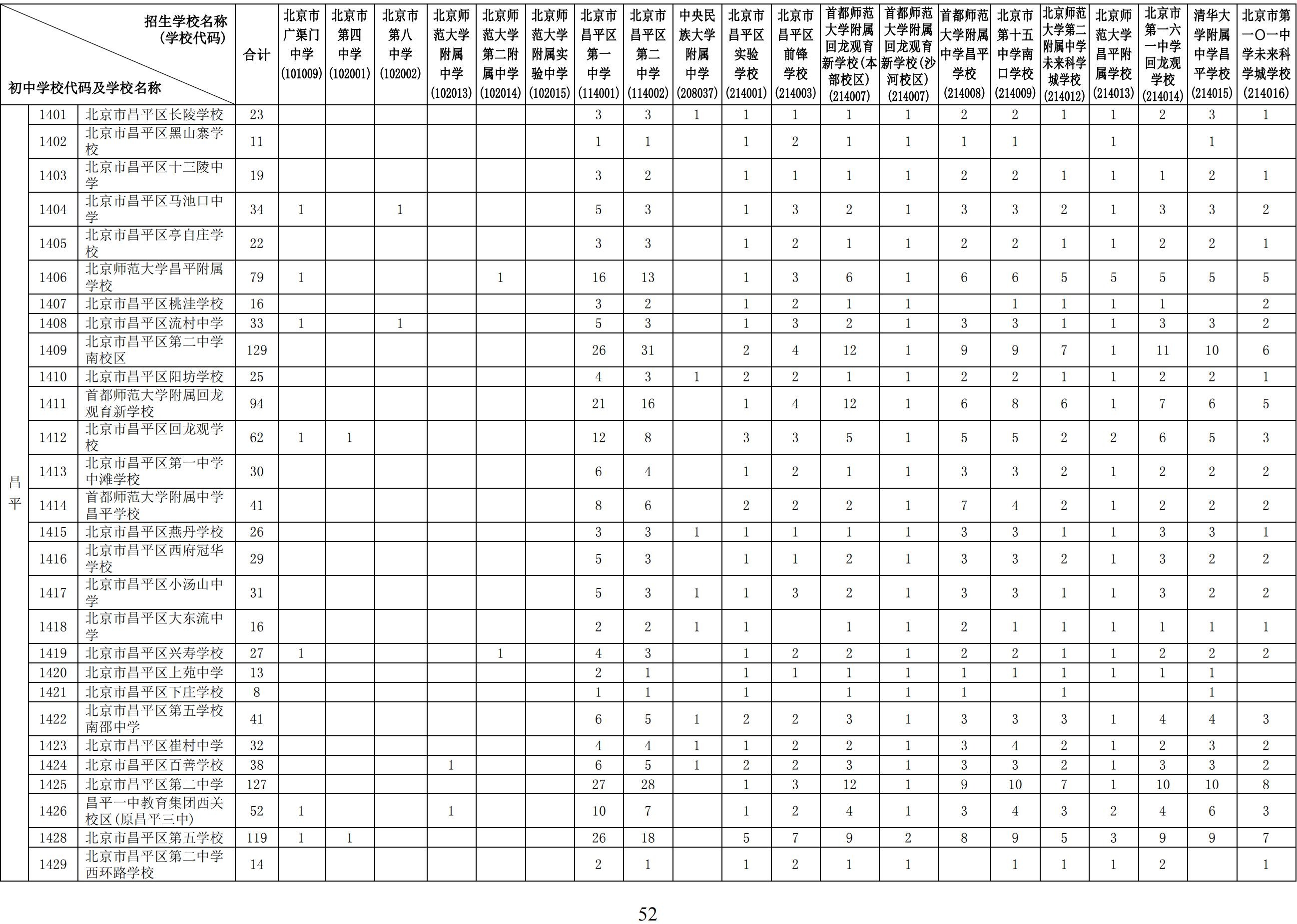 2024年初中学校校额到校分配名额