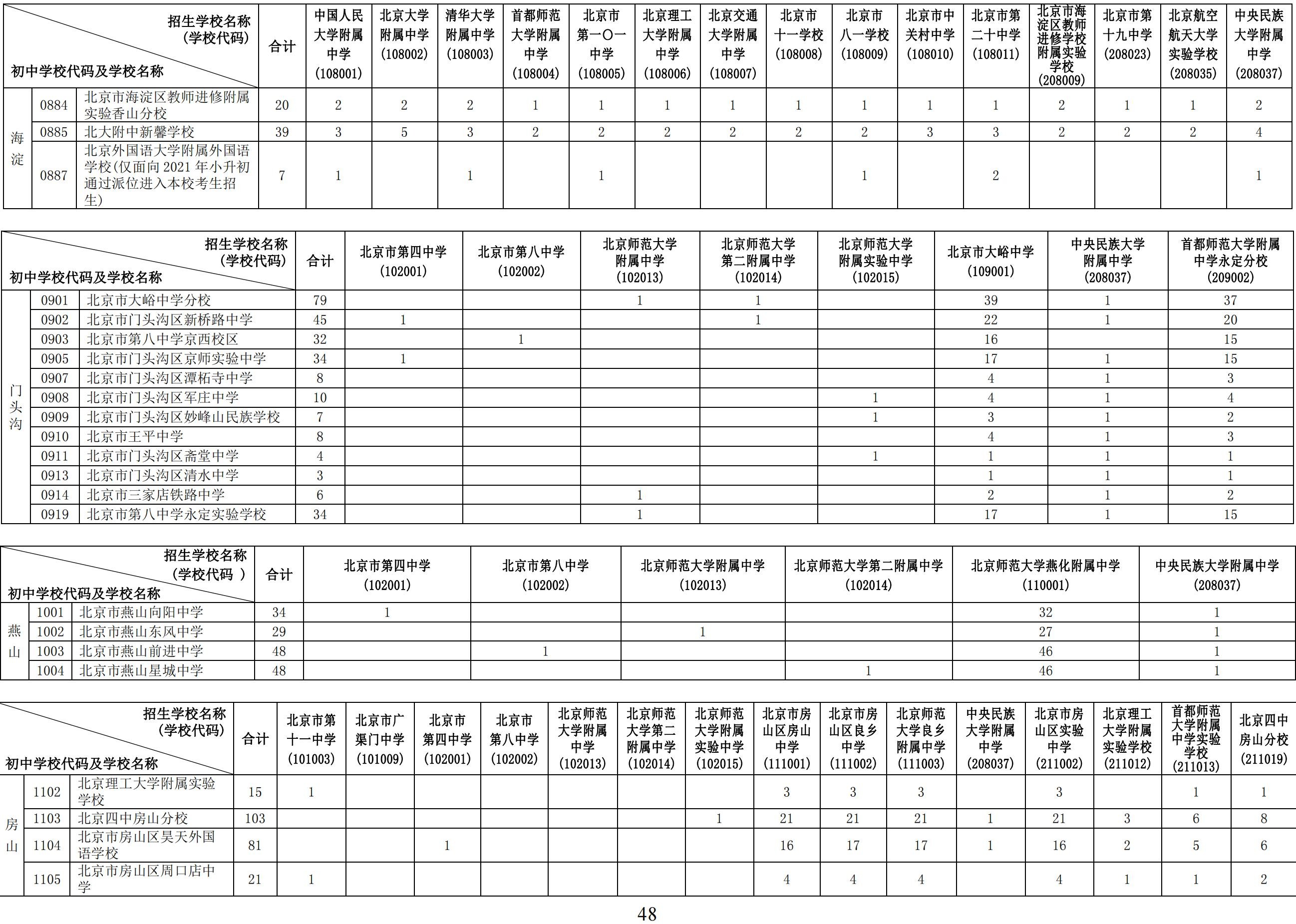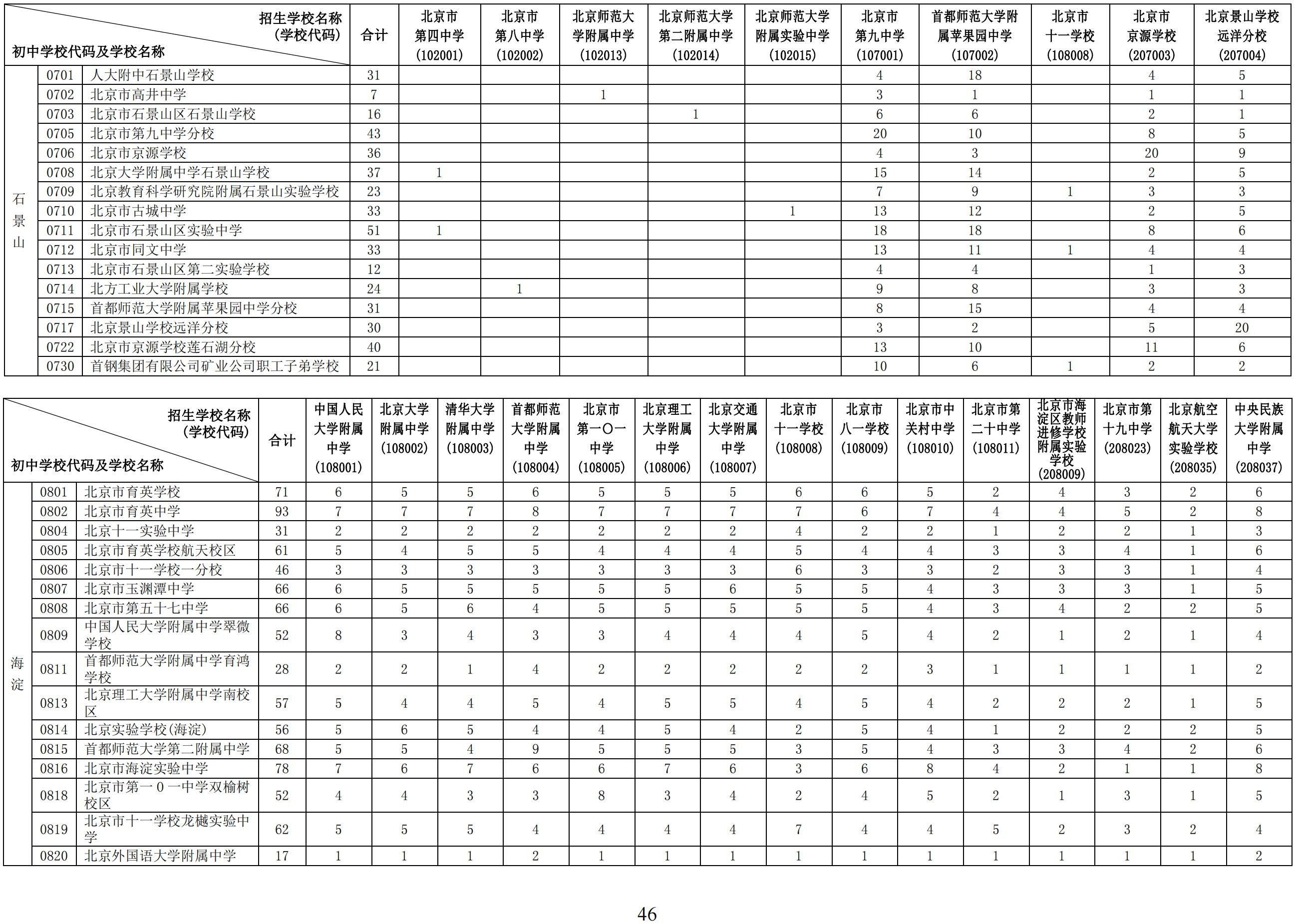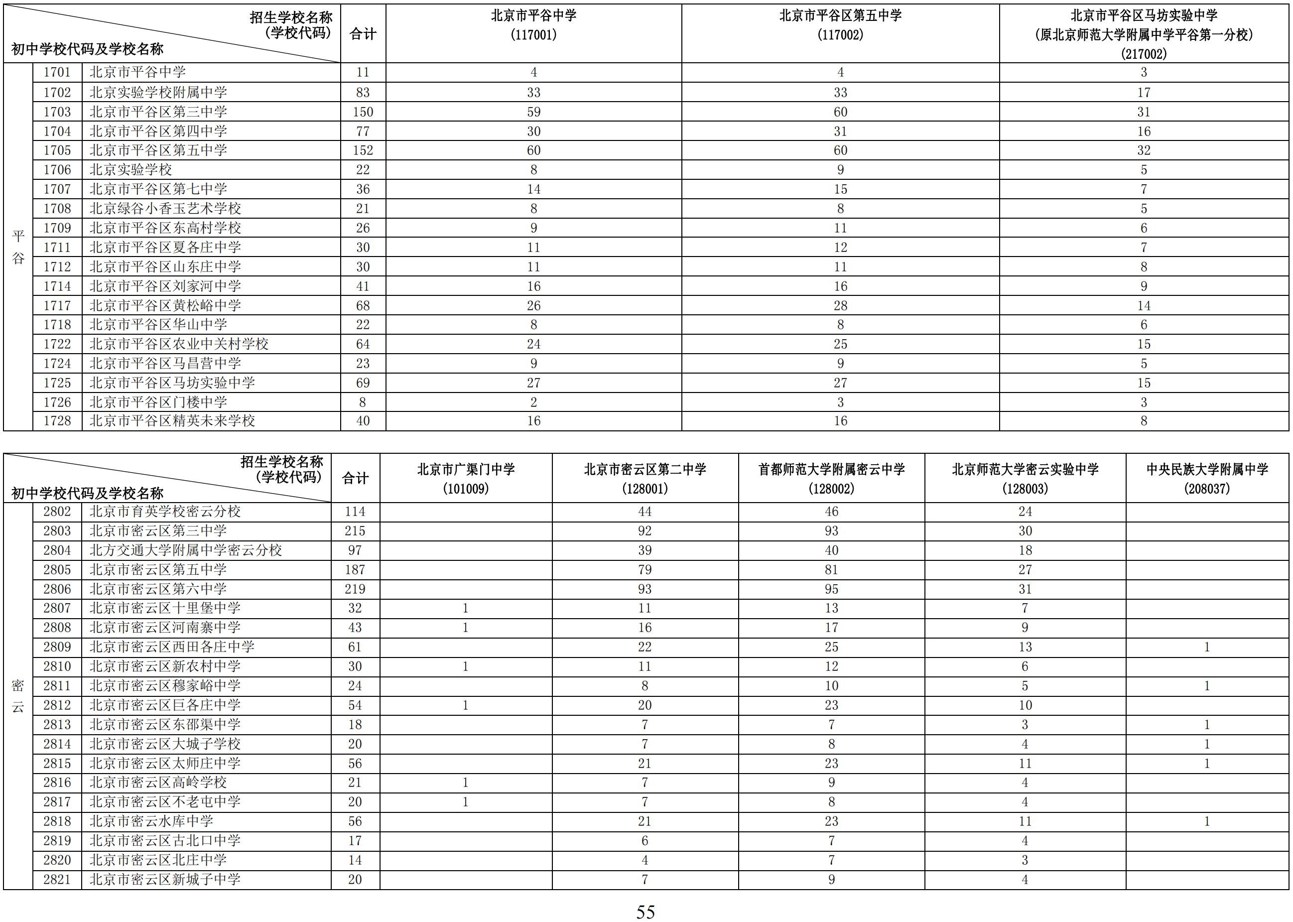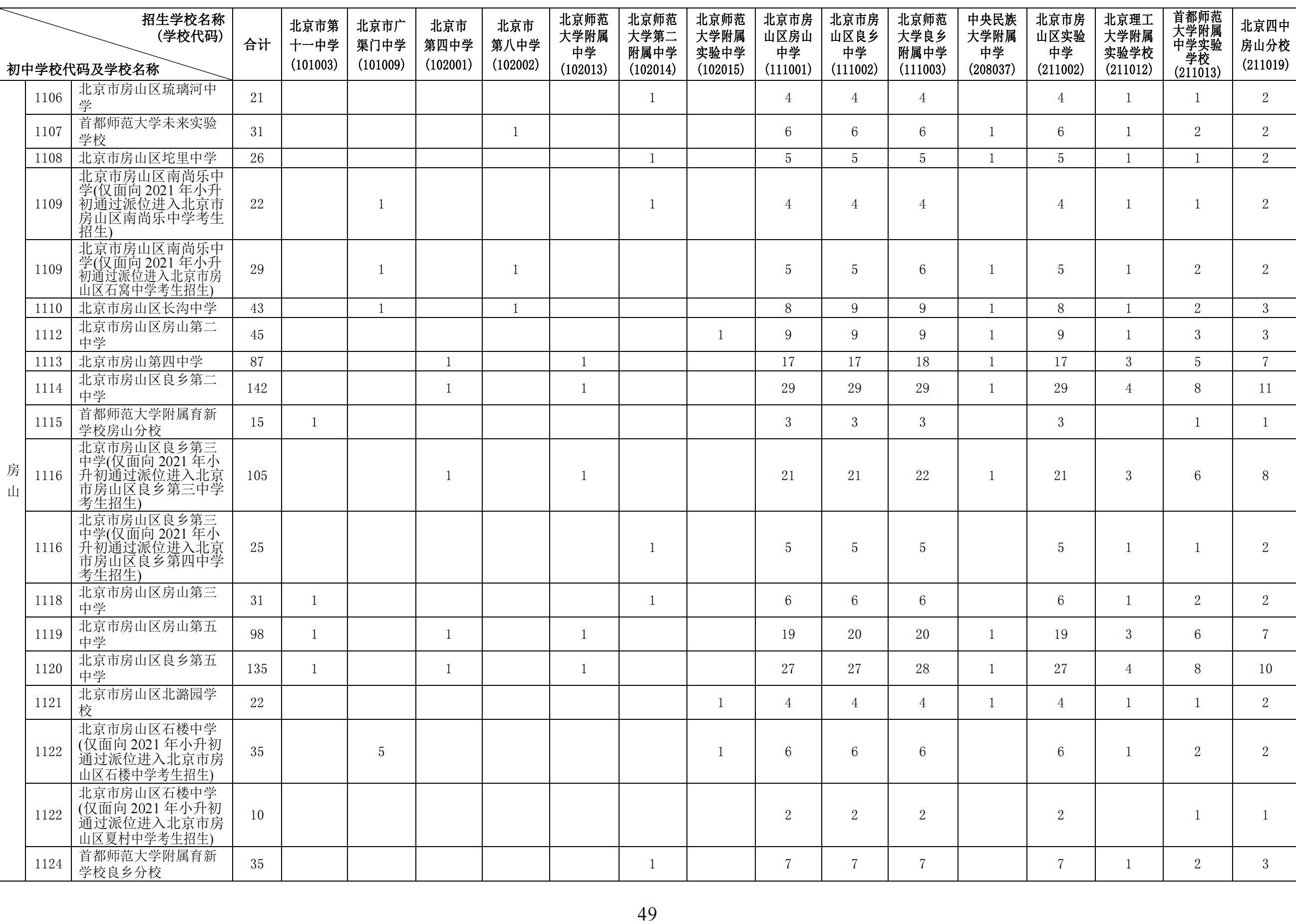 2024年初中学校校额到校分配名额