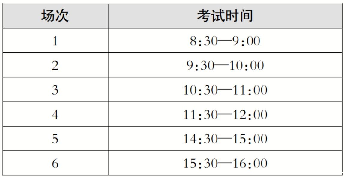 英语听说机考每天最多安排6场,每场考试时间约30分钟。考试具体安排如下: