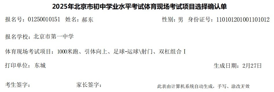 2月26日选项结束后,学校下载并打印初中体育现场考试项目选择确认单,考生及家长签字后交给学校。